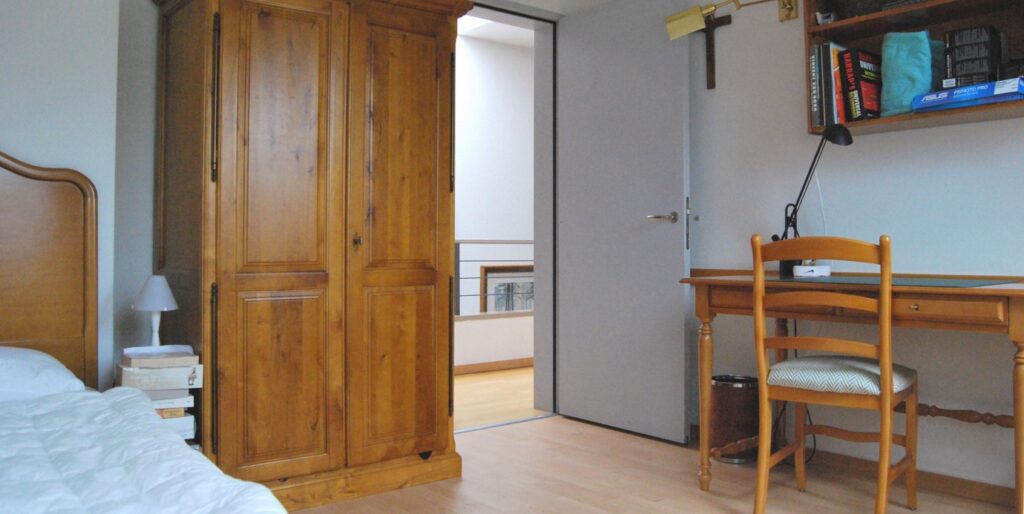 Das Haus verfügt über mehrere eingerichtete Studierräume mit persönlichem Platz, ein grosses Wohnzimmer mit Klavier und Heimkino Anlage, mehrere kleinere Wohnzimmer für Besprechungen, ein Esszimmer, 28 möblierte Einzelzimmer, eine Hauskapelle, ein Computer- und Kopierraum, Duschen und WCs auf jeder Etage und eine Tiefgarage mit Fahrradparkplatz.